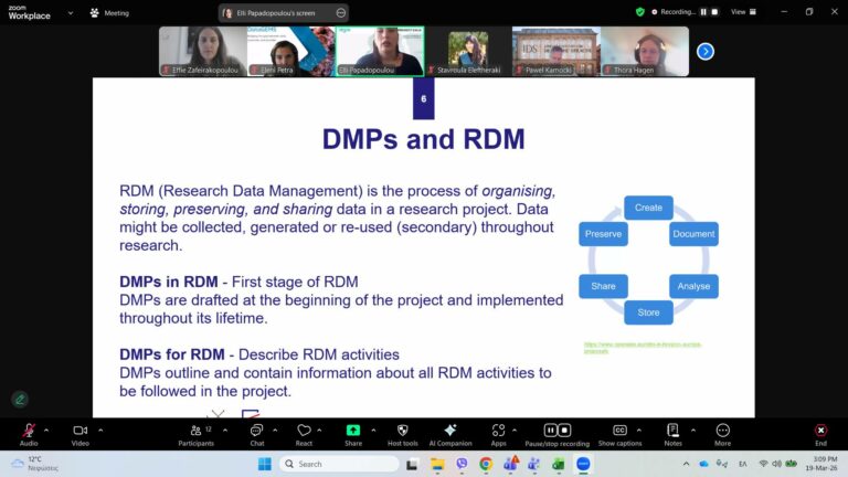 On March 19th, 2026, the DataGEMS project hosted an enlightening webinar led by Elli Papadopoulou, member of OpenAIRE and ARGOS Product Manager. Elli introduced ARGOS to the DataGEMS partners. ARGOS is an open, configurable, and extensible tool that supports research management activities around outputs such as data and software. Built on OpenDMP, it simplifies the management, validation, monitoring, and maintenance of Output Management Plans (OMPs), including Data Management Plans (DMPs) and Software Management Plans (SMPs). As the first service connected to the OpenAIRE Graph, ARGOS applies FAIR principles to enhance and streamline research planning processes. Through this webinar, DataGEMS strengthened its links and liaisons with OpenAIRE inside the ecosystem of openness and fairness.