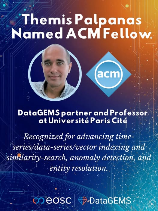 Proud to celebrate Professor Themis Palpanas (Université Paris Cité), a key member of the DataGEMS consortium, who has been named ACM Fellow, one of the highest distinctions in computer science.